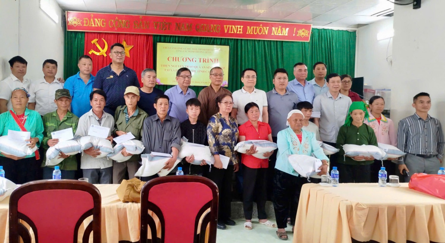 Thực hiện Kế hoạch số 61/KH-MTTQ-BTT ngày 7/4/2026 của Ủy ban MTTQ Việt Nam tỉnh, Ngày 11/4/2026 đồng chí Nguyễn Phương Huy - Tỉnh ủy viên, Phó Chủ tịch Ủy ban MTTQ Việt Nam tỉnh, Chủ tịch Hội Nông dân tỉnh phối hợp với Đoàn thiện nguyện chùa Cảnh Linh, xã Phúc Thành, thành phố Hải Phòng do đồng chí Thích Thanh Ngọc trưởng đoàn, thăm và tặng 200 suất quà, mỗi xuất trị giá 500.000, đồng cho các gia đình hộ nghèo, cận nghèo, gia đình khó khăn đột xuất tại xã Phan Thanh, Sơn Lộ.